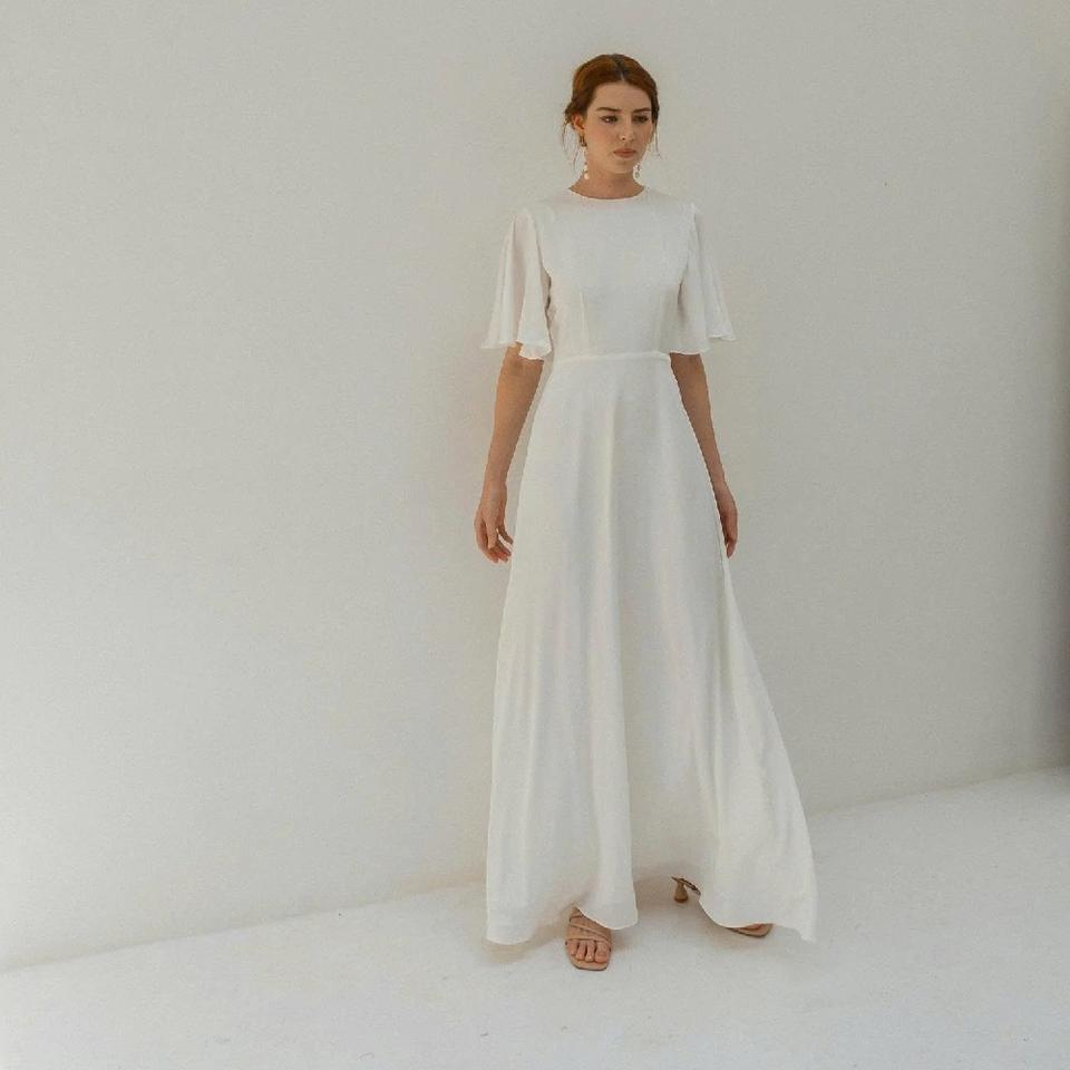 Name product:Satin Wedding Dress with Flutter Sleeves