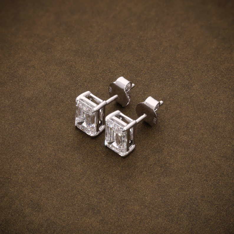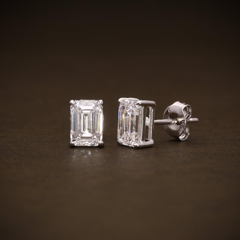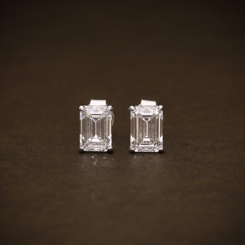 Boucles d'oreilles solitaires en diamant de laboratoire pour mariée, taille émeraude, 2,14 carats de poids total, D VVS2, certifiées IGI, bijoux élégants