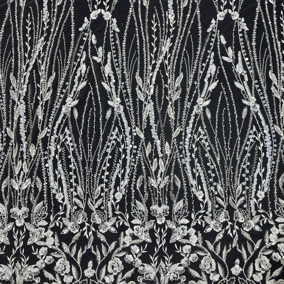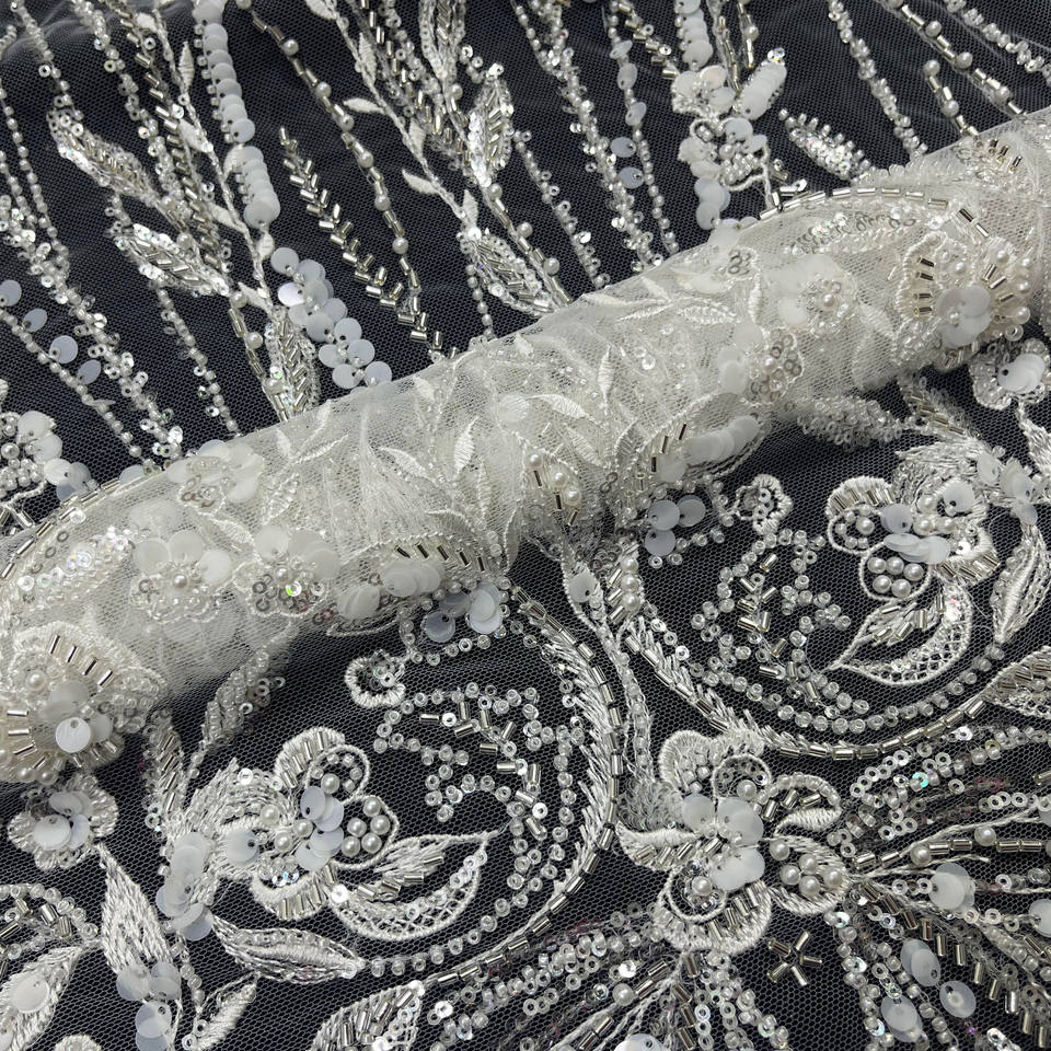 Tissu de perles de paillettes blanches de dentelle de mariée pour les femmes