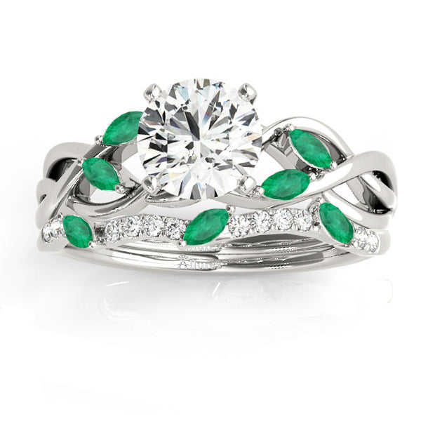 Ensemble de mariée pour femme avec émeraude marquise en palladium de 0,43 ct et diamant bleu couleur G-H serti à griffes, bijoux fins exquis