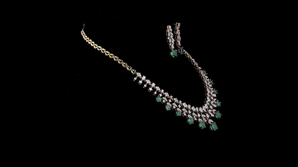 Parure de collier de mariée de luxe en argent plaqué or 18 carats avec diamants de laboratoire taille poire et pierres imitation émeraude verte