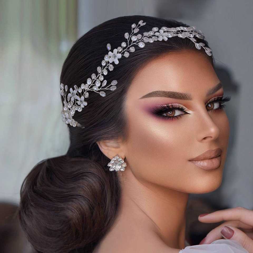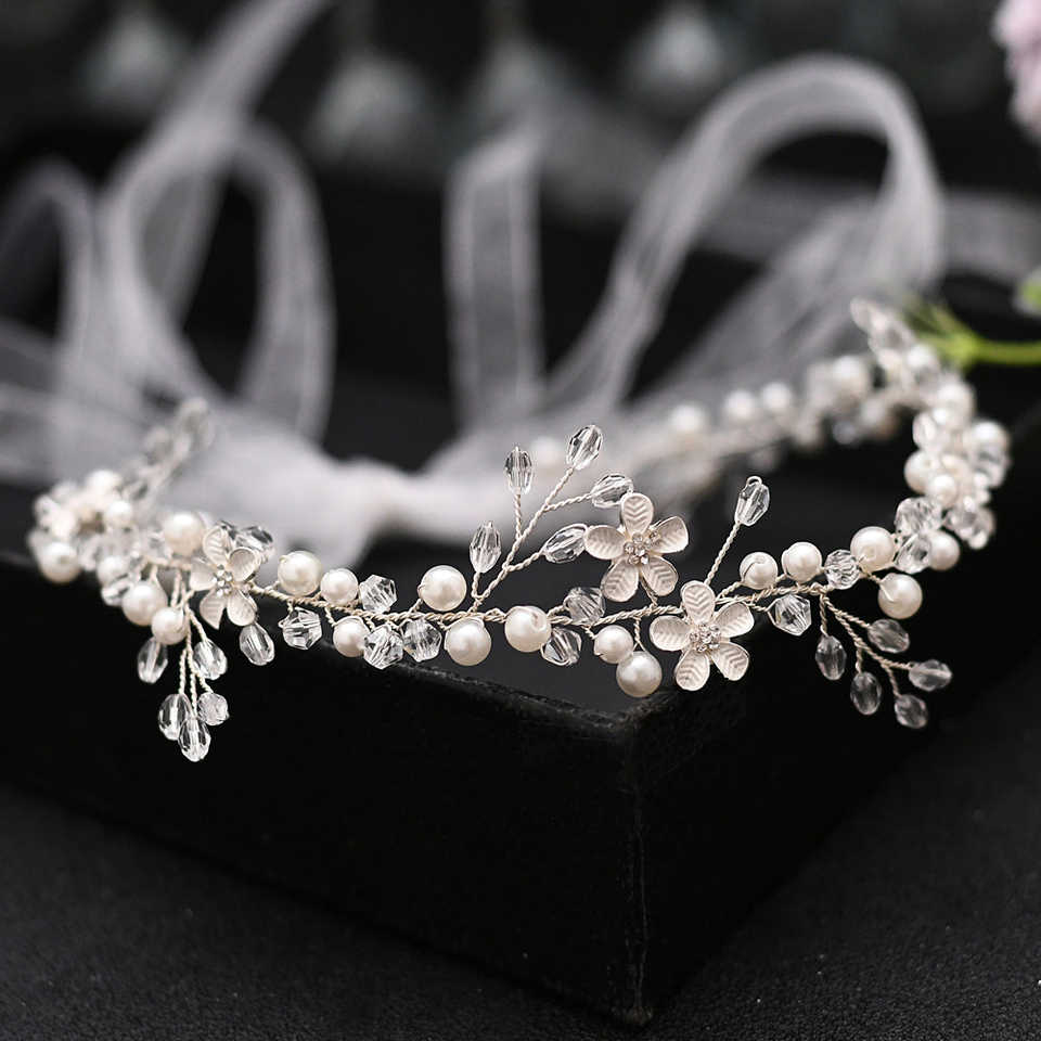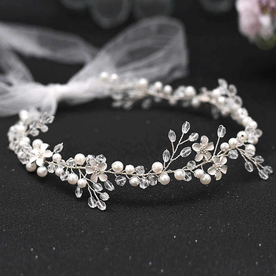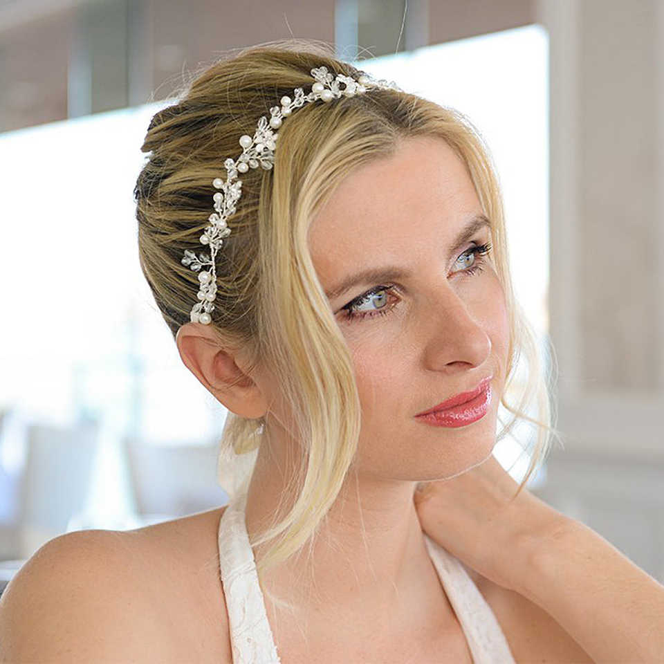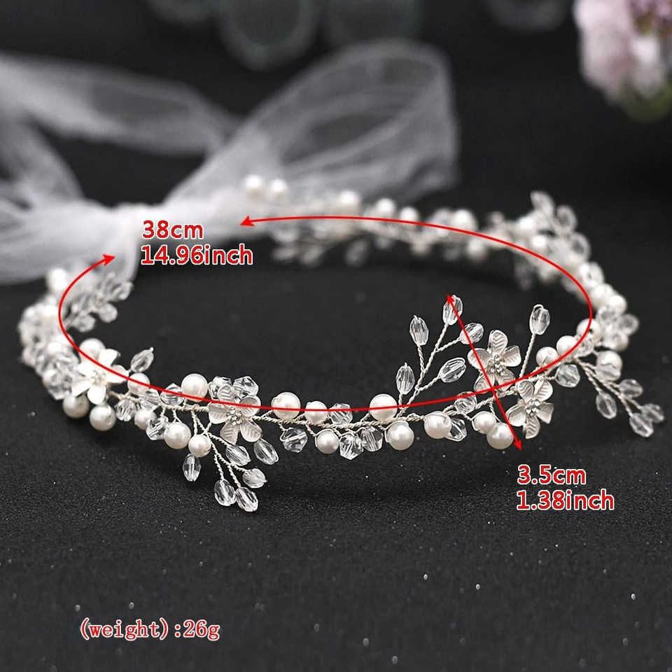 Bridella BHP347-S Headband with Silver Rhinestone & Pearl Premium Crystal Comfortable Fit for Weddings & Formal Events