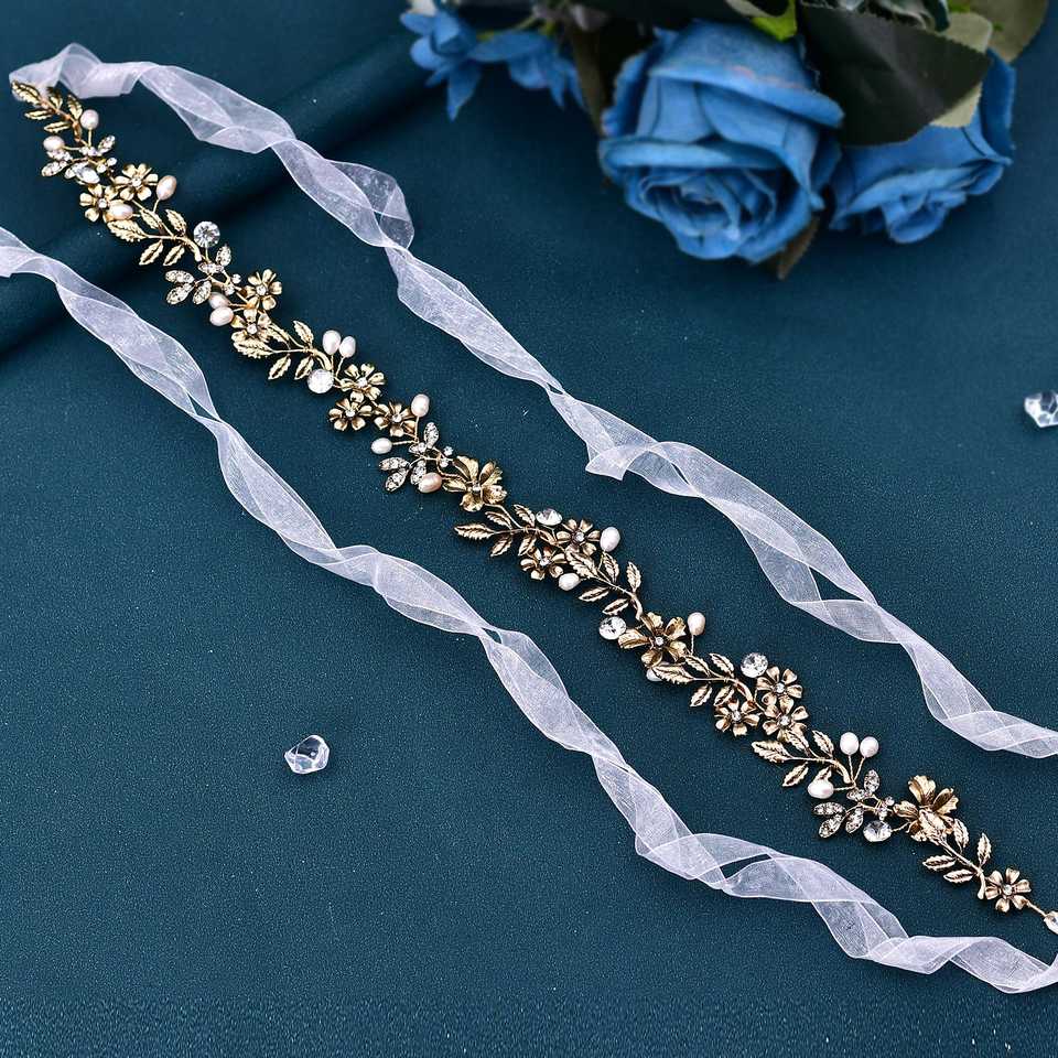 Bridella BHP355 Vintage Gold Rhinestone & Pearl Tiara Elegant Bridal Headwear Comfortable Fit for Weddings Proms Formal Events