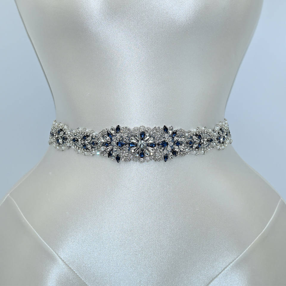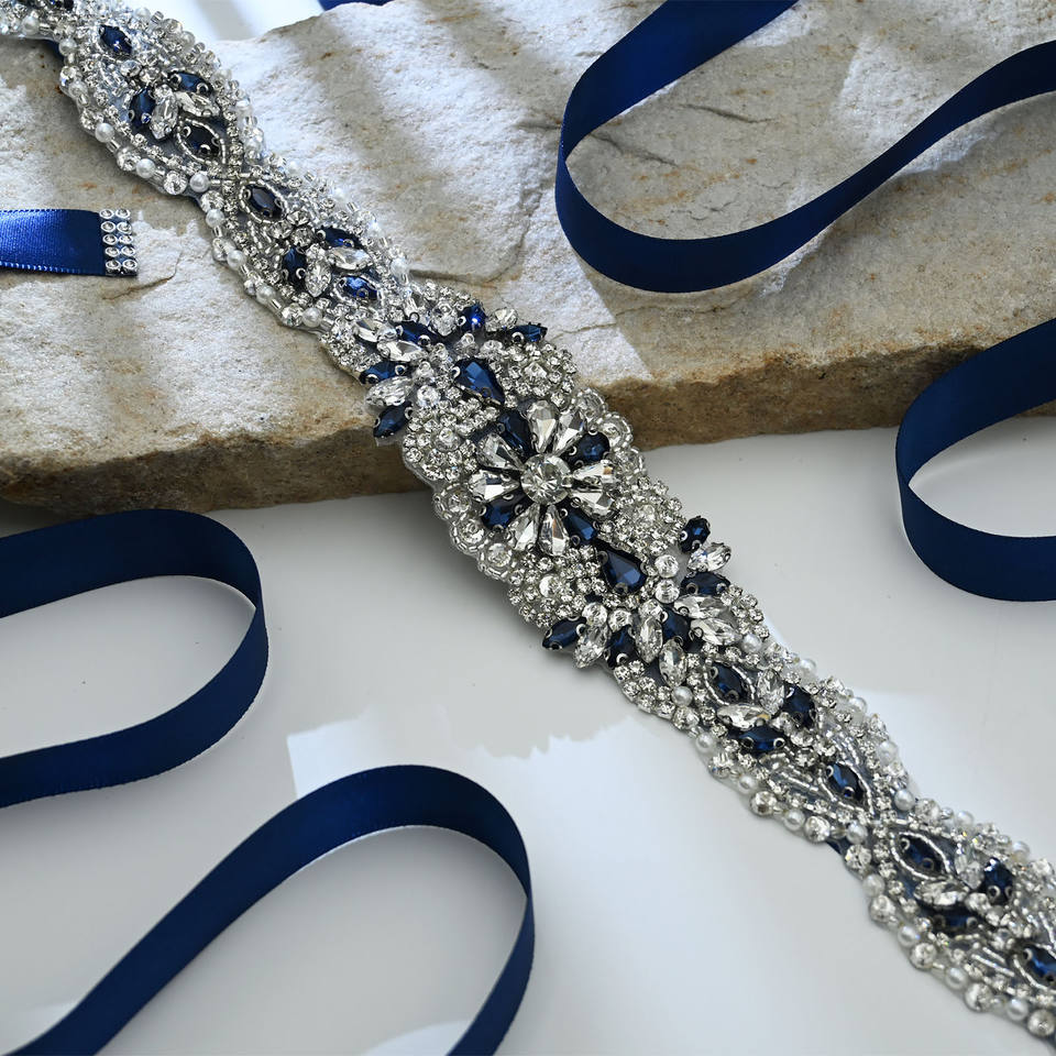 Bridella BS119 Silver Wedding Bridal Belt with Adjustable Fit and Silver Rhinestone & Pearl Embellishments