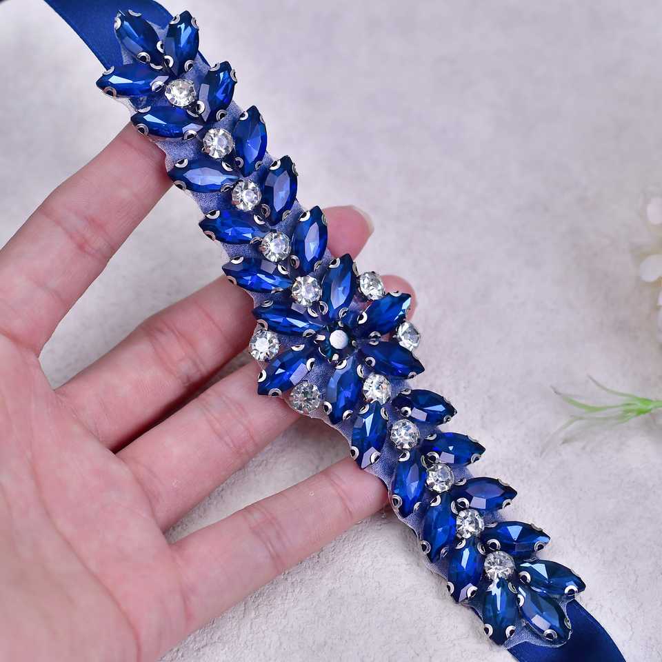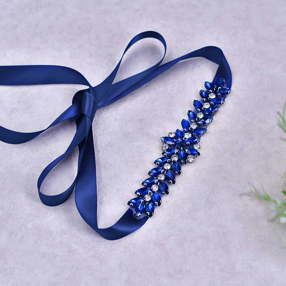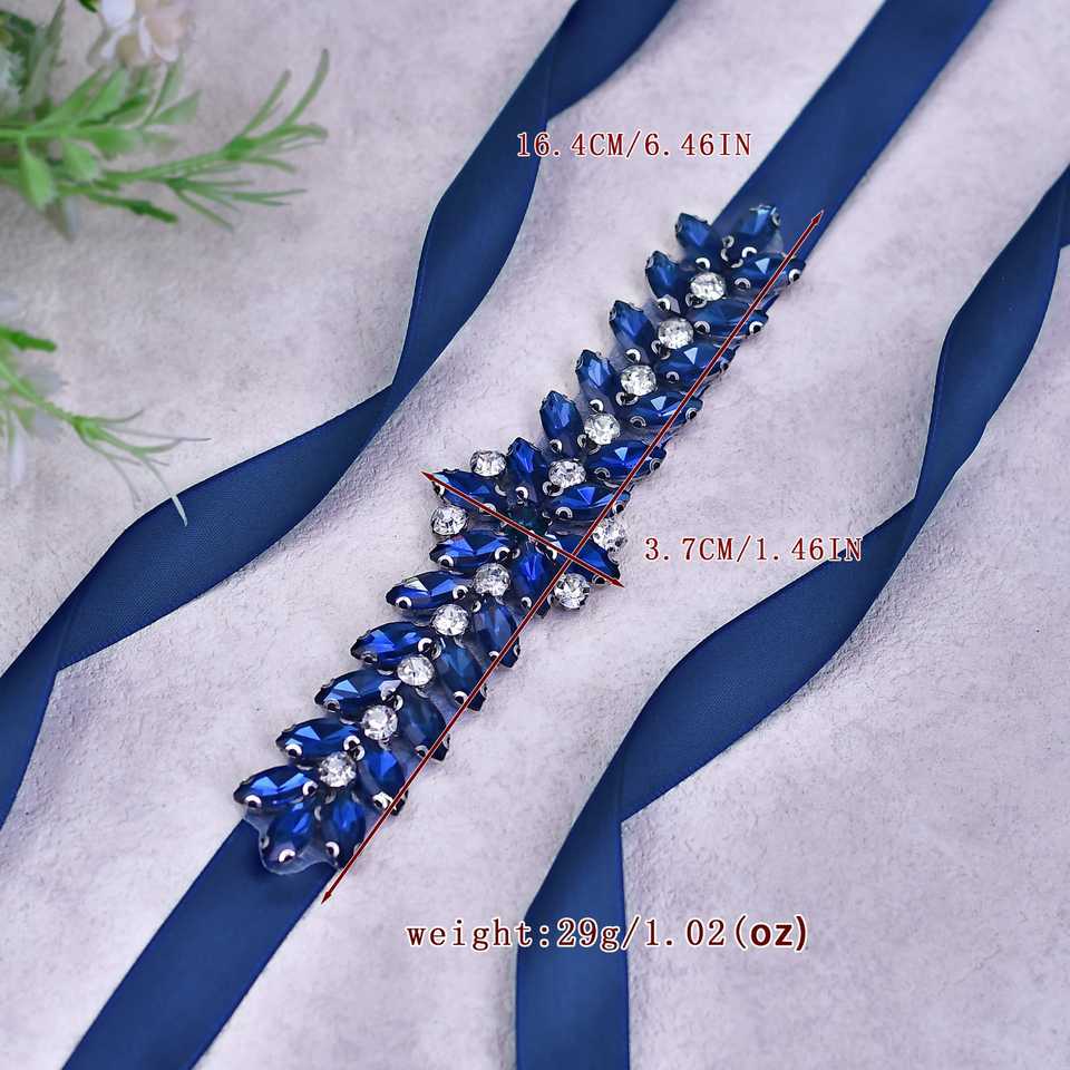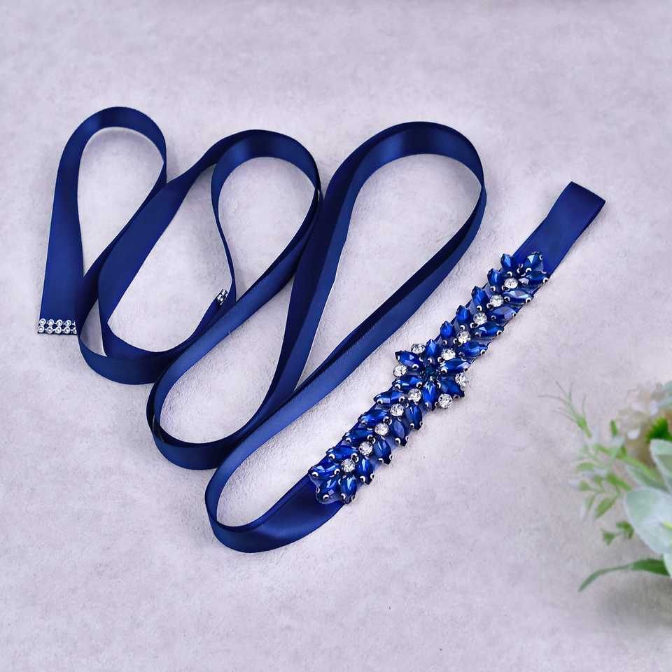 Ceinture de mariage Bridella BS69ML marine avec détails en strass, ajustable pour mariages, bals et événements formels