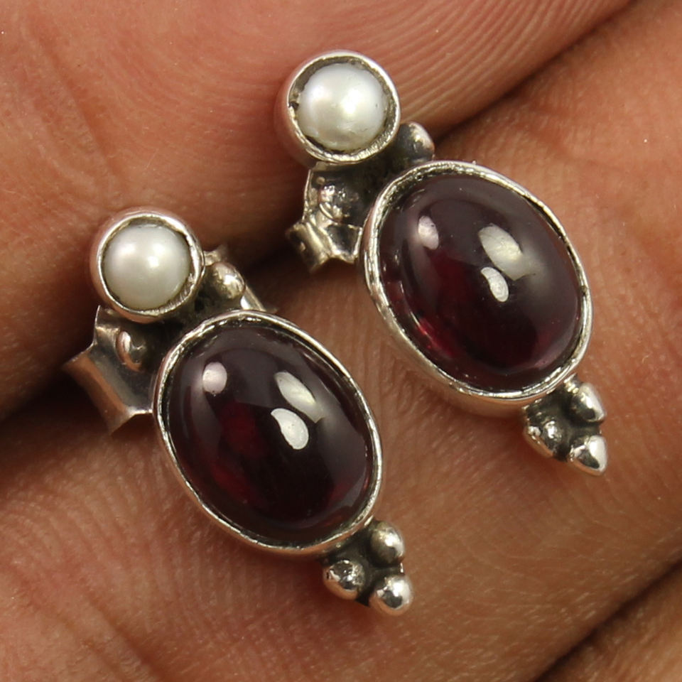 Boucles d'oreilles grenat et perle naturelles rouges et blanches en argent sterling 925 bijoux simples mignons demoiselle d'honneur cadeau de naissance de janvier