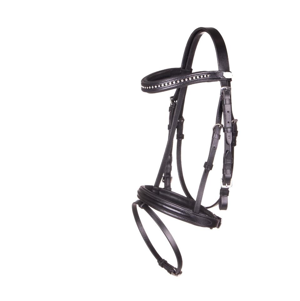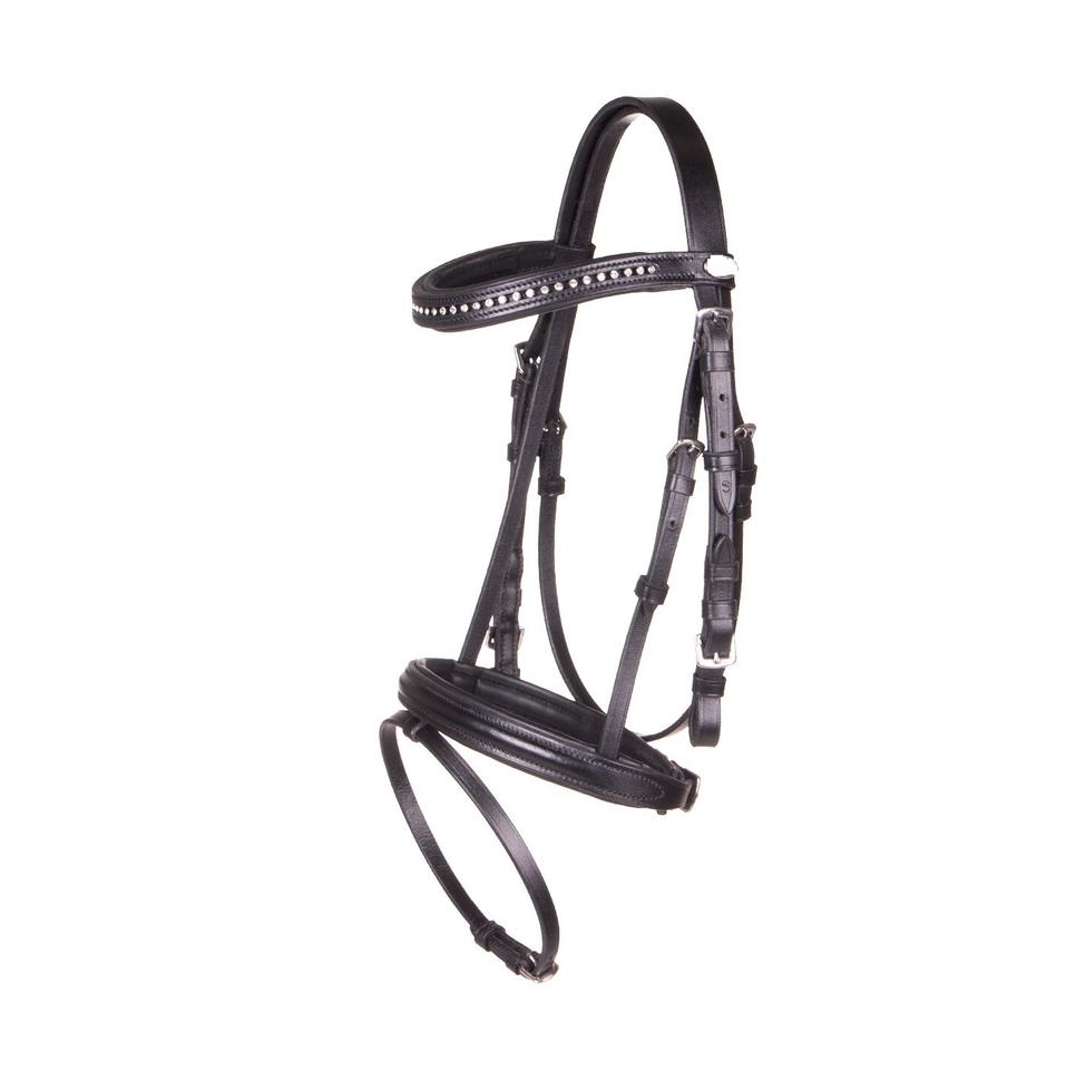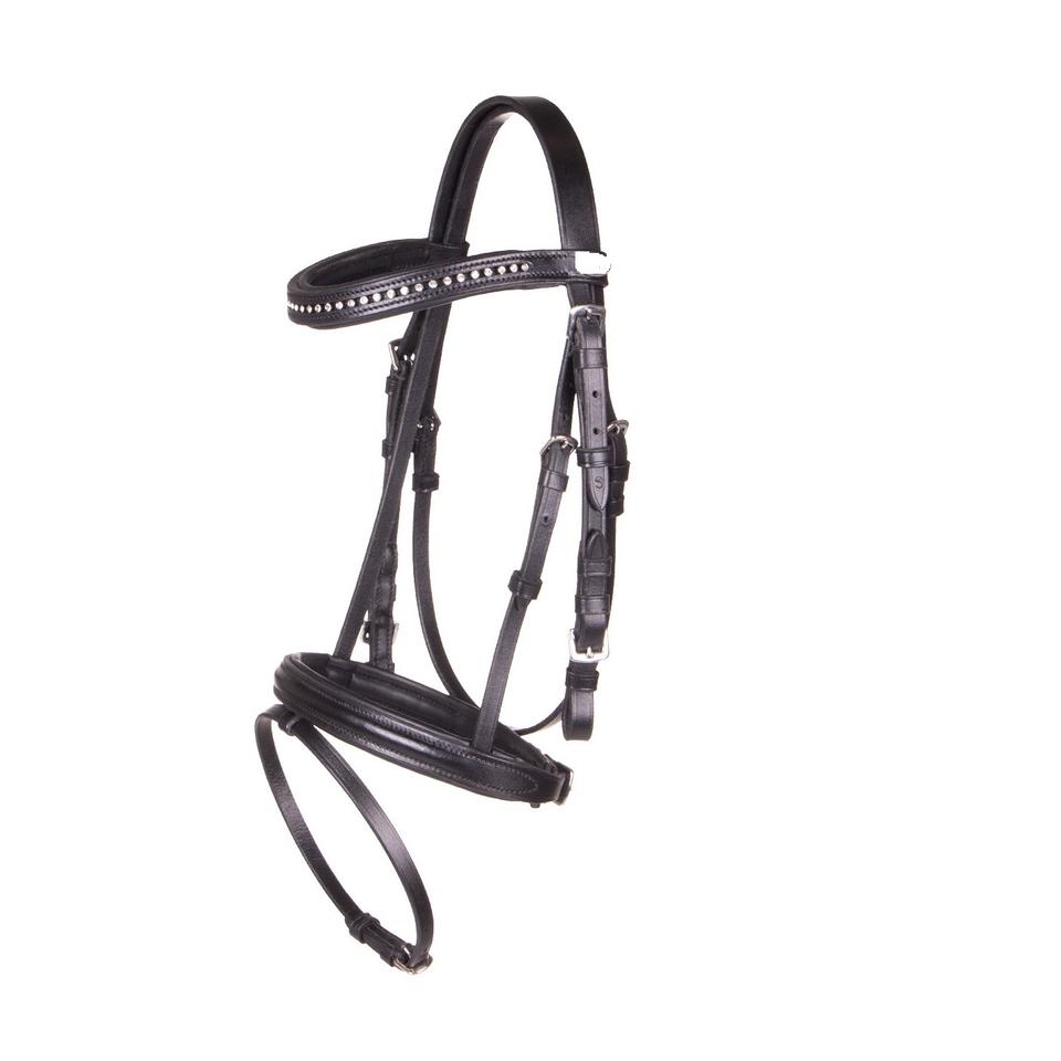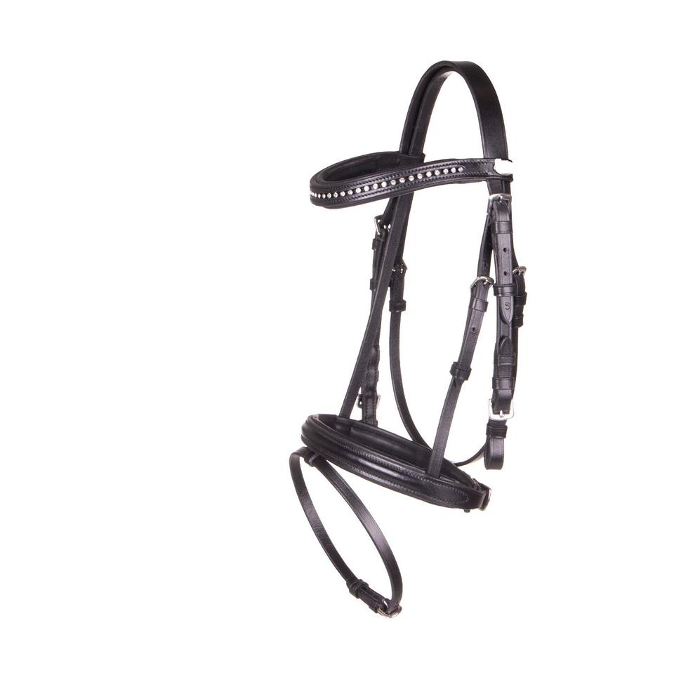 La bride a une belle bande de front légèrement incurvée avec de petits strass