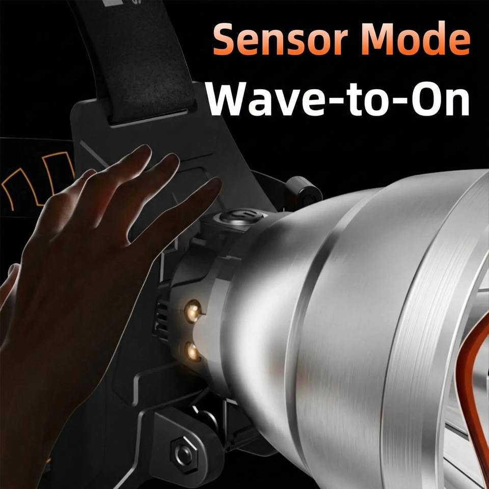 Lampe frontale LED puissante Bright Bird 7000LM avec capteur de mouvement, rechargeable par USB, étanche, pour la chasse, la pêche, la course à pied