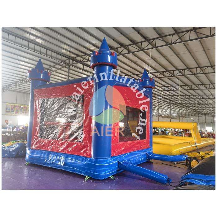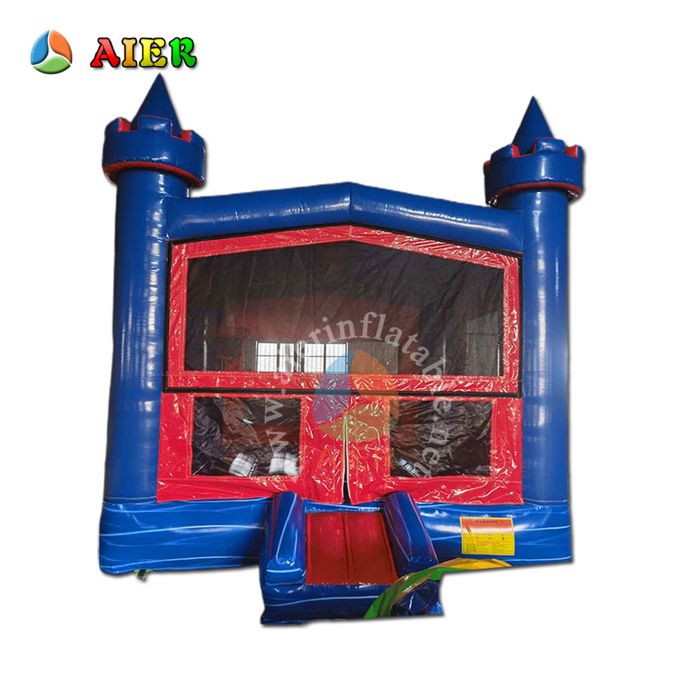 Château gonflable bleu vif et rouge avec toboggan - Château de saut sécurisé pour enfants, équipement de jeu pour fêtes en plein air