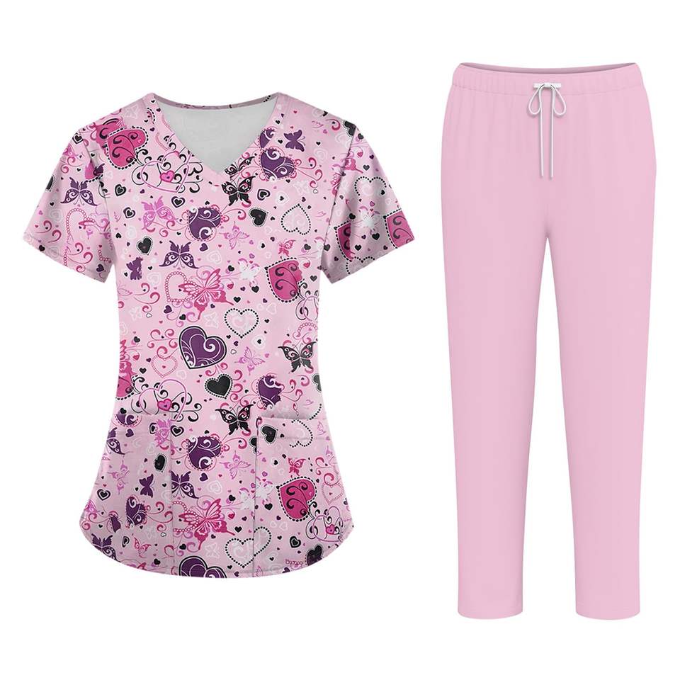 Hauts de gommage brillants pour femmes pour infirmières pédiatriques et éducatrices avec des impressions de dessins animés amusantes