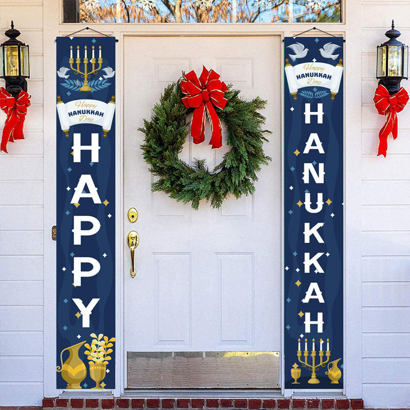 Drapeau de Hanouka en couplets lumineux, forme rectangulaire, rideau de porte festif, décoration de fête, fond photo, ambiance festive
