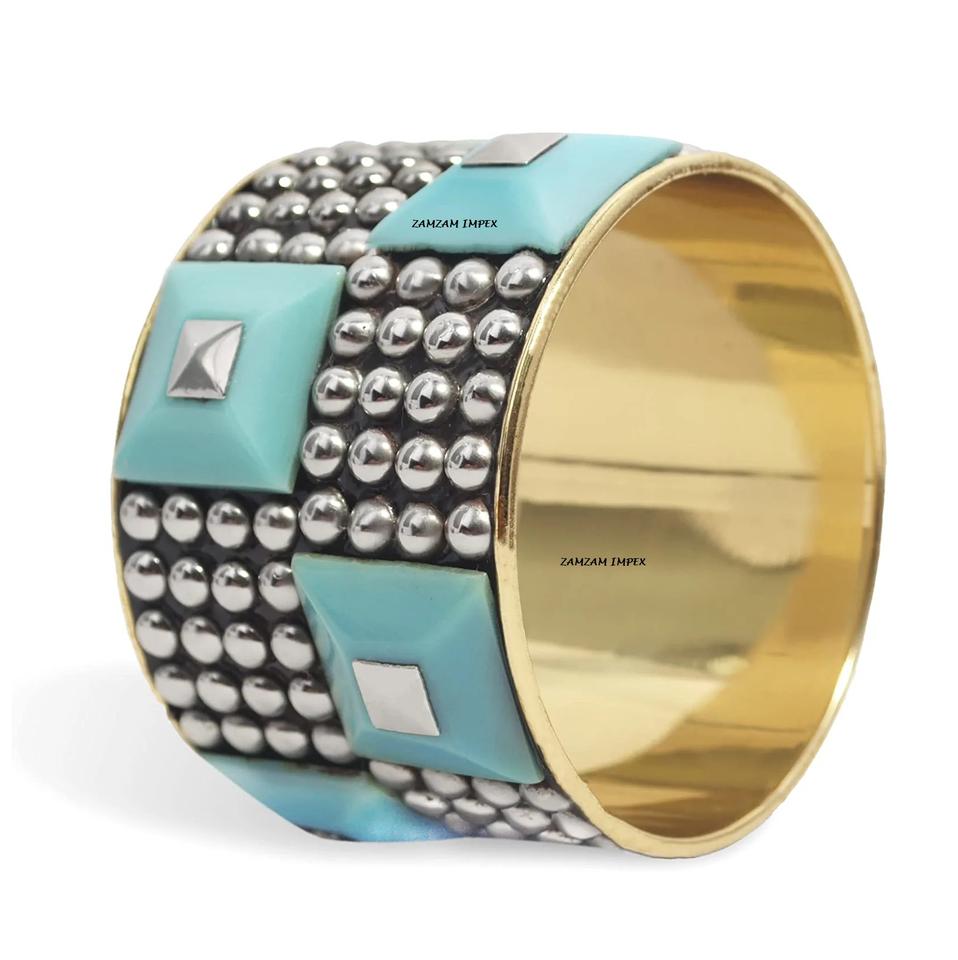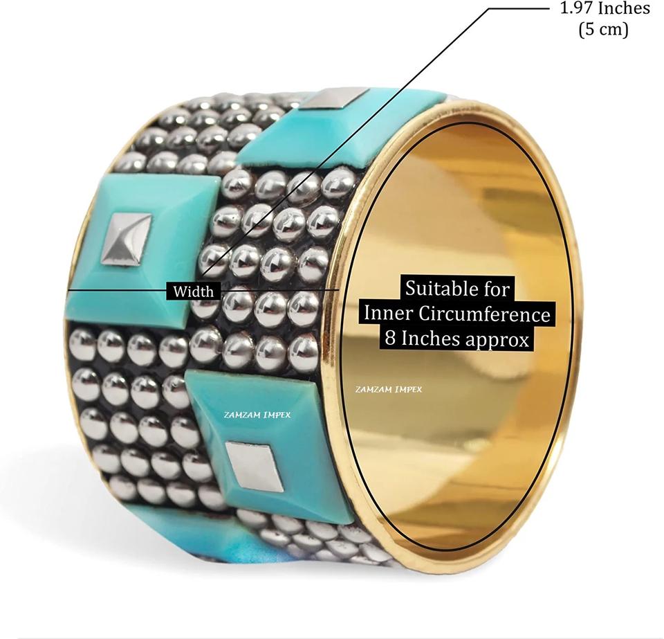 ZAMZAM IMPEX ZZJ 1611 Bracelet en laiton orné de perles pyramidales en résine bleu ciel et clous dorés, léger, poli, style affirmé
