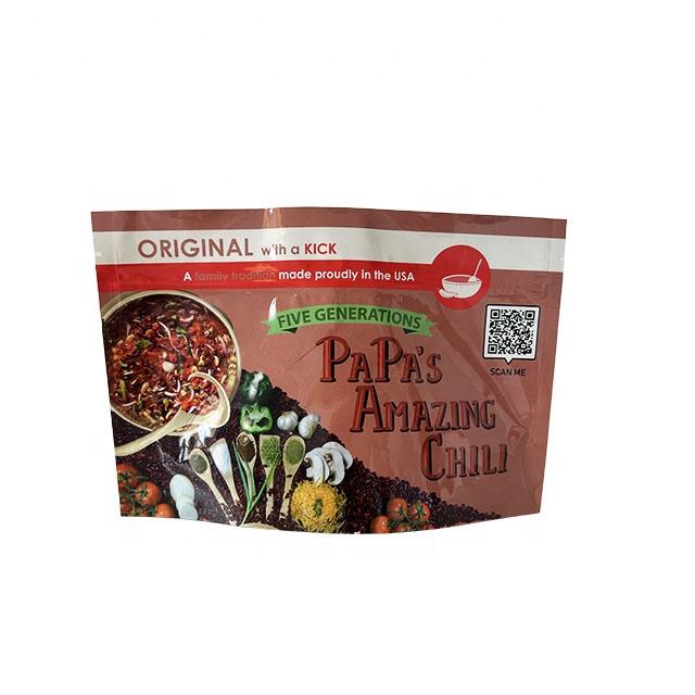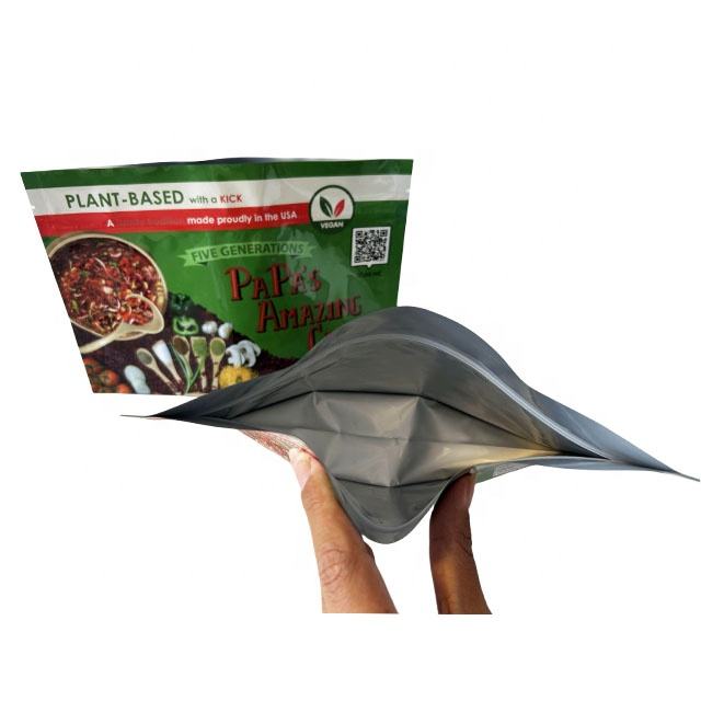 Finition brillante Doypack support pochette à fermeture éclair feuille d'aluminium sac de collation en plastique avec stockage de Mylar pour poudre de chili d'aliments congelés