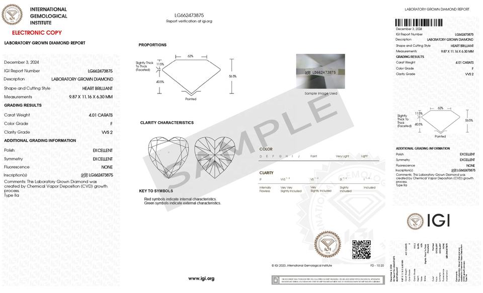Diamant CVD de laboratoire en forme de cœur lumineux de 4,01 carats, couleur F, clarté VVS2, avec certificat IGI pour créer un pendentif d'amour