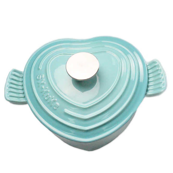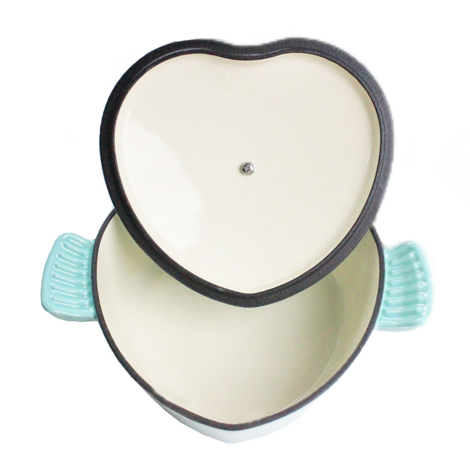 Bright Houseware Mini Marmite en Fonte Émaillée pour Usage Domestique, à Double Anse, en Forme de Cœur, type Casserole et Four à la Hollandaise