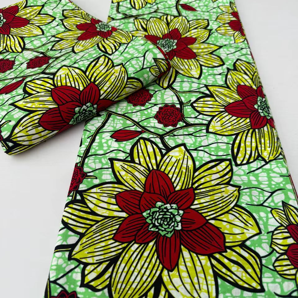Tissu en coton imprimé africain multicolore brillant pour la couture et la production de vêtements au Mozambique