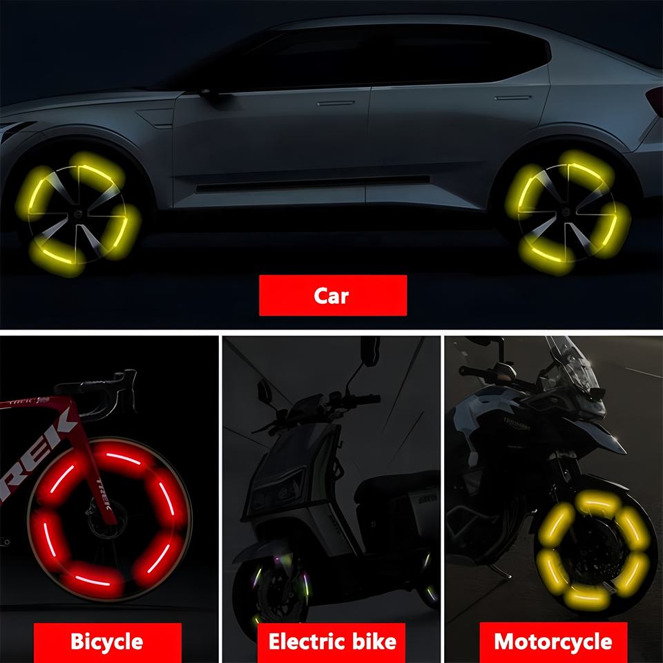 Autocollants réfléchissants brillants pour jantes de voiture, bandes décoratives pour auto, autocollants de sécurité nocturne pour voiture, moto et vélo