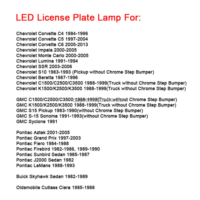 Accessoires de voiture transparents lumineux LED lampe de numéro de plaque d'immatriculation pour Pontiac Grand Prix Fiero Firebird