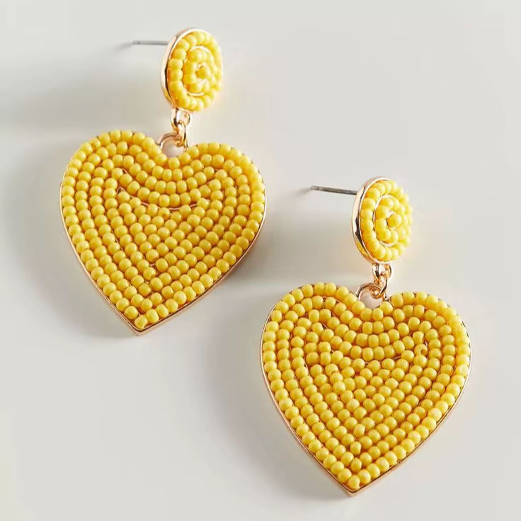 Boucles d'oreilles pendantes en forme de grand cœur jaune vif avec perles, parfaites pour la Saint-Valentin, accessoire de mode tendance