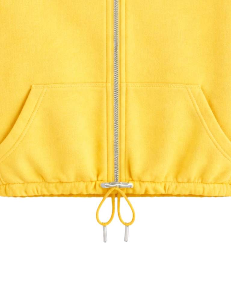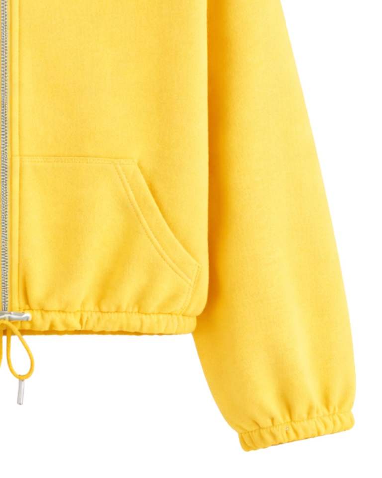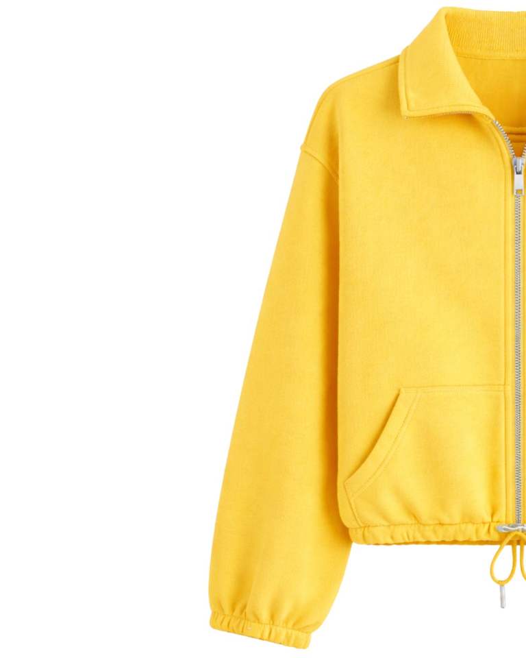 Sweat-shirt court en polaire jaune vif pour femme, col polo, poches avant, cordon de serrage réglable, veste élégante et chaude