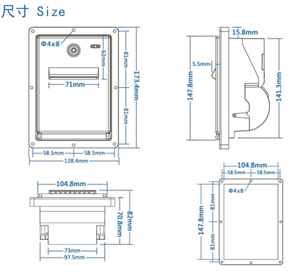 Dimensions extérieures:128.4mm*82mm*173.4mm