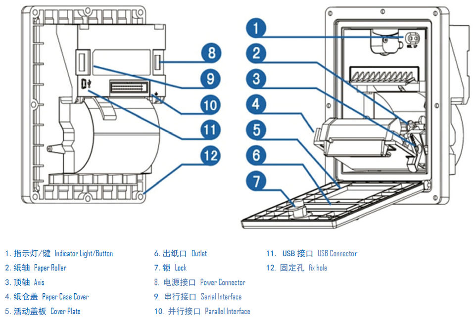 Imprimante thermique Brightek WH-C05 avec panneau de verrouillage par clé, 58 mm, avec coupe-papier automatique et ports RS232 TTL parallèles USB
