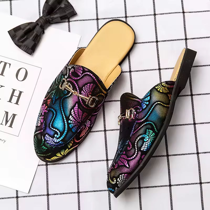 Chaussures en cuir décontractées légères et tendance pour l'extérieur, quatre saisons, demi-mocassins, grande taille, sans talon, pantoufles pour hommes à une seule jambe
