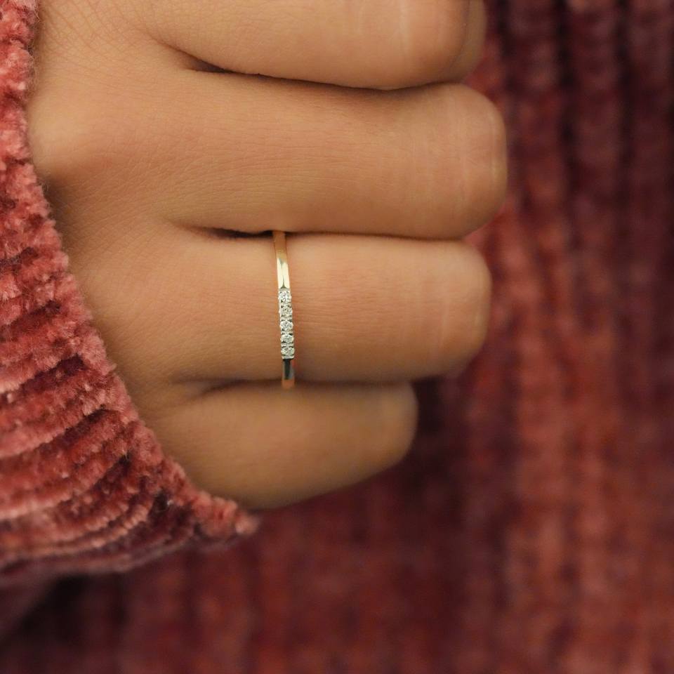 Brillant rond coupe 5 pavé ensemble diamant bague avec diamant cultivé en laboratoire pour un usage quotidien bague empilable pour cadeau d'anniversaire