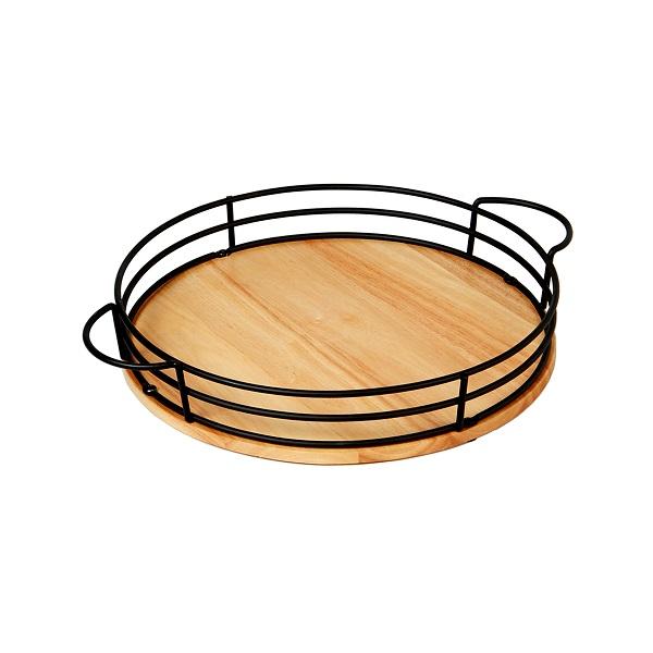 Brillant servant le dernier plateau fabriqué en inde Style Unique plateau de service rond simple en métal et bois pour le plateau de nourriture de Restaurant en vente