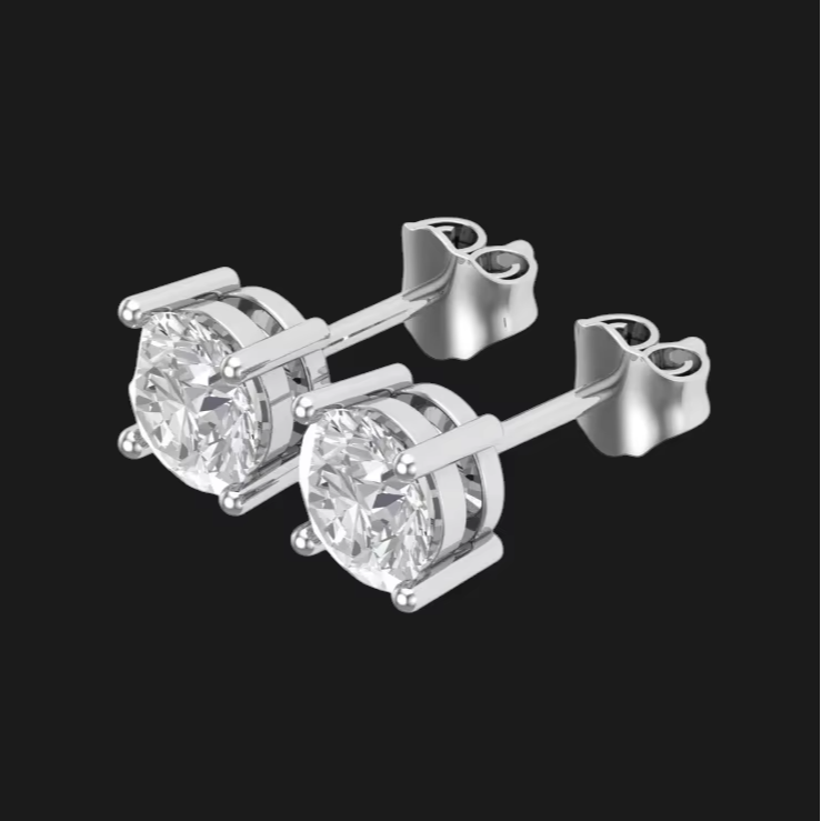 Brilliant round moissanite stud earrings in polished silver setting crafted for modern elegance with subtle hip hop inspired