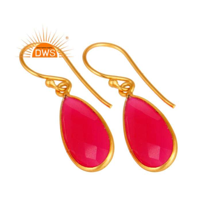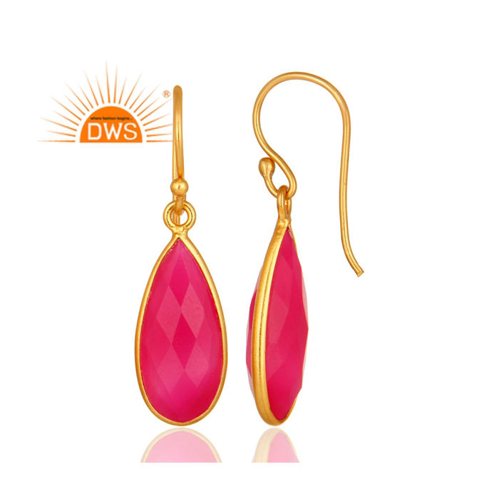 Briolette Goutte Pierres Précieuses Rose Calcédoine Boucles D'oreilles Fournisseur De Bijoux En Argent Faits À La Main Boucles D'oreilles Plaqué Or Bijoux Grossiste