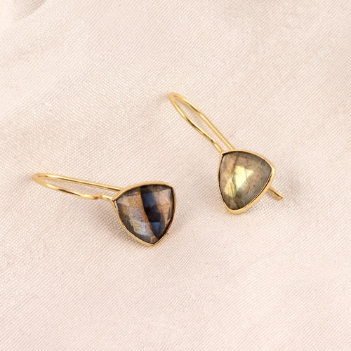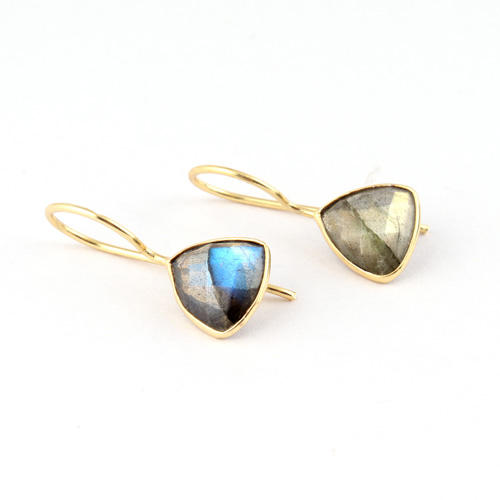 Boucle d'oreille en labradorite bleue véritable, plaquée or, faite à la main, sertie de pierres en forme de trillion, petite boucle d'oreille pour femmes