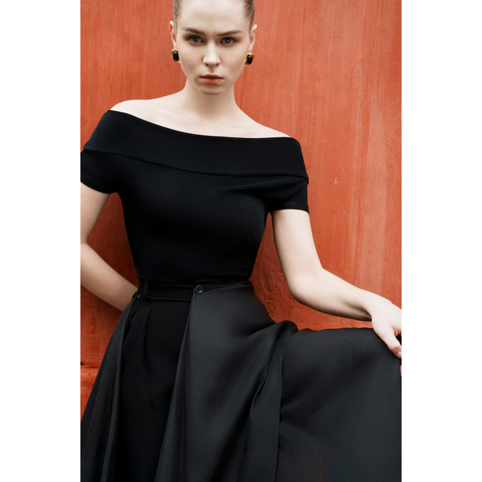 Haut en tricot Briona en tricot flexible scintillant épouse doucement la forme offrant un look chic et élégant à épaules dénudées
