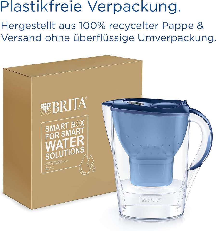 Brita Marella Carafe Filtre à eau Bleu (2.4 L) incl. 3 x Cartouche-filtre tout-en-1 Maxtra Pro pour réduire le calcaire, le chlore