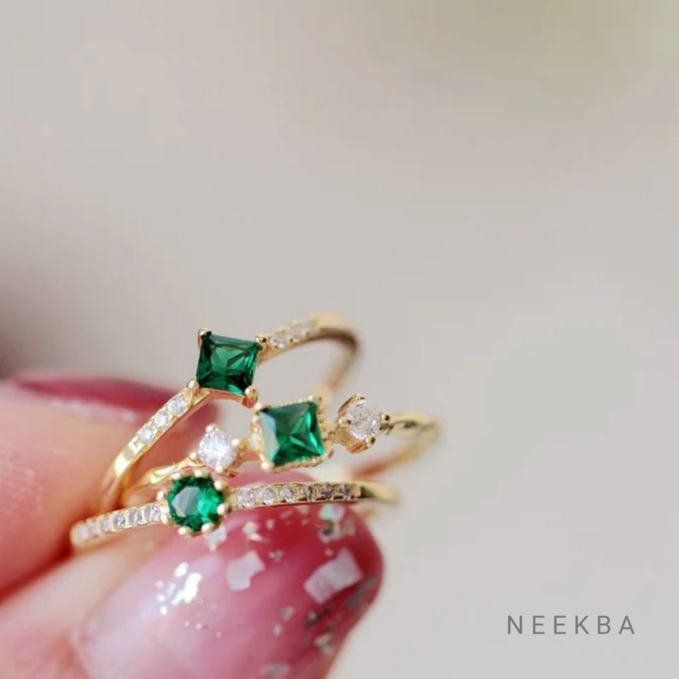 Design britannique 10K bague en or massif faite à la main minimaliste conception délicate bague en or usure quotidienne bague en or couleur verte carré émeraude