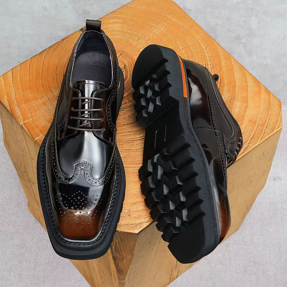Chaussures Derby en cuir brogue sculptées à bout carré pour hommes, style britannique, nouvelle collection automne 2025, décontractées et habillées, pour mariages et cérémonies, semelle épaisse