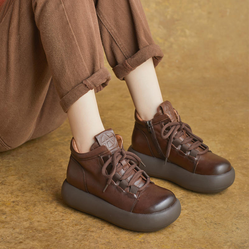 Chaussures de sport en cuir de vachette faites à la main, style britannique, automne-hiver, nouvelle collection, semelle souple, bottines rétro pour femmes