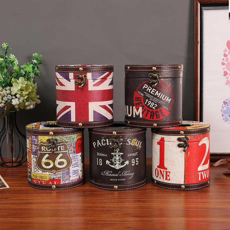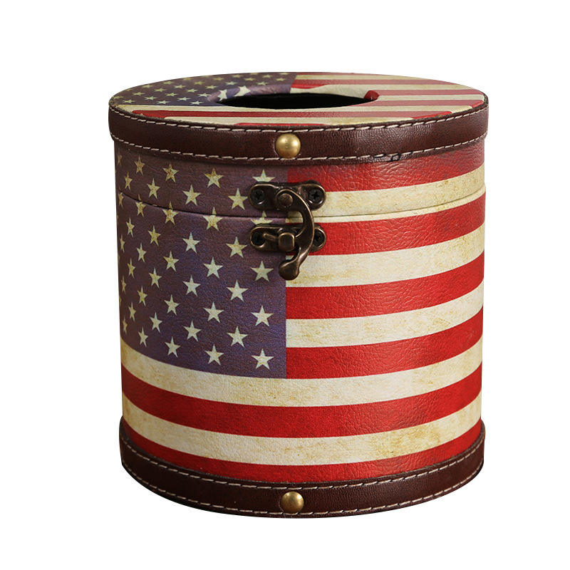 Boîte à mouchoirs de style britannique, design Union Jack cylindrique, en bois, pour voiture et salon