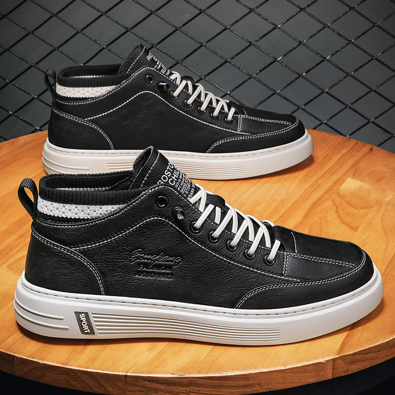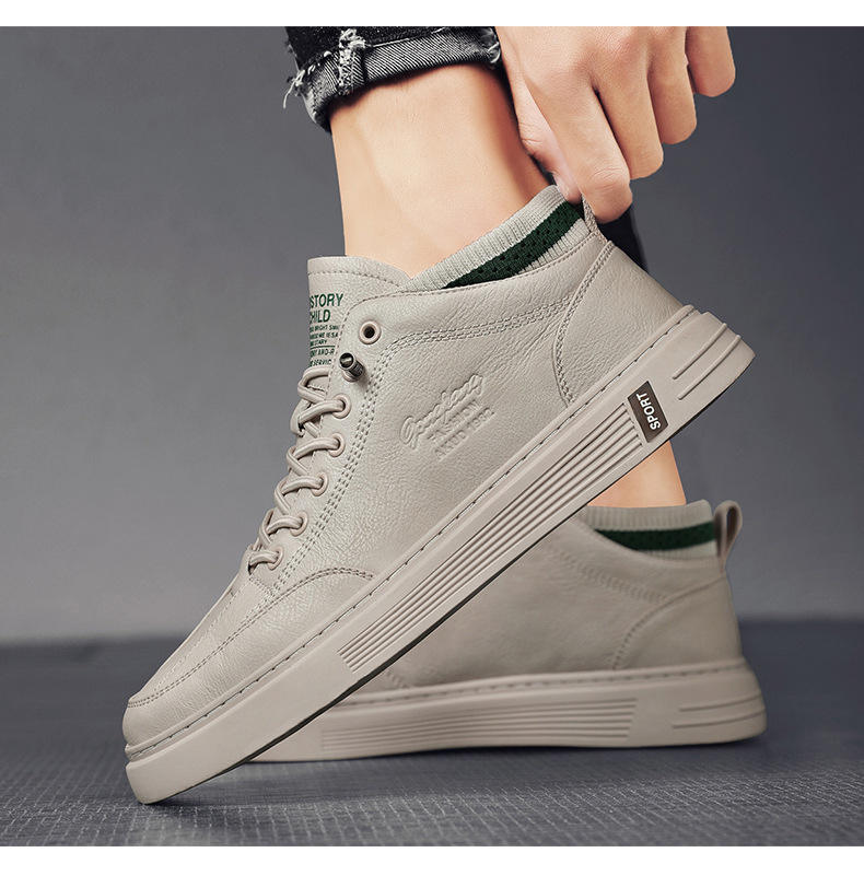 Bottes Martin britanniques polyvalentes à tige haute pour hommes, chaussures en cuir blanc mi-mollet de style sport décontracté
