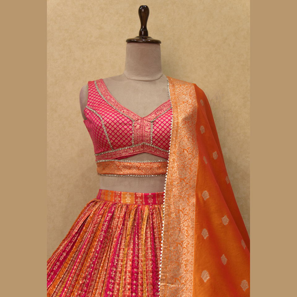 Travail:Banarasi Crush Print à base de soie de haute qualité