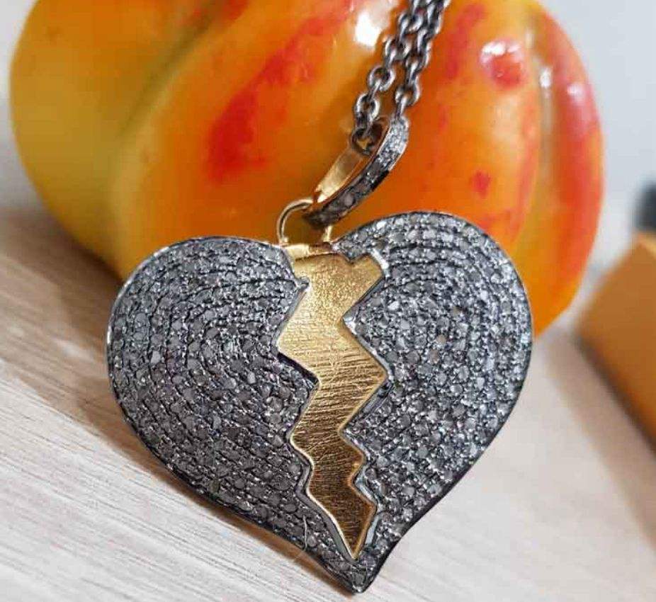 name or words:Broken Heart 925 Sterling Silver Pave Pendant