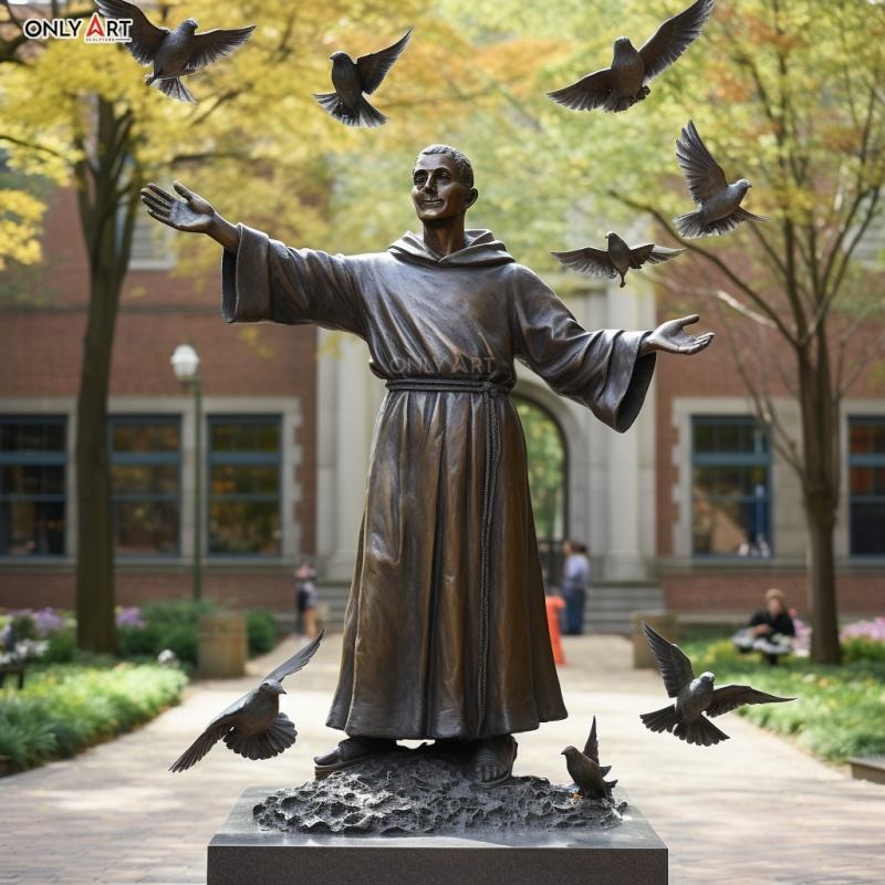 Bronze Cast Stigmates Prédicateur Franciscains Trouvé Italie Patron Saint Loups et Colombes Surround Nature Taille St Francis Statue En Laiton