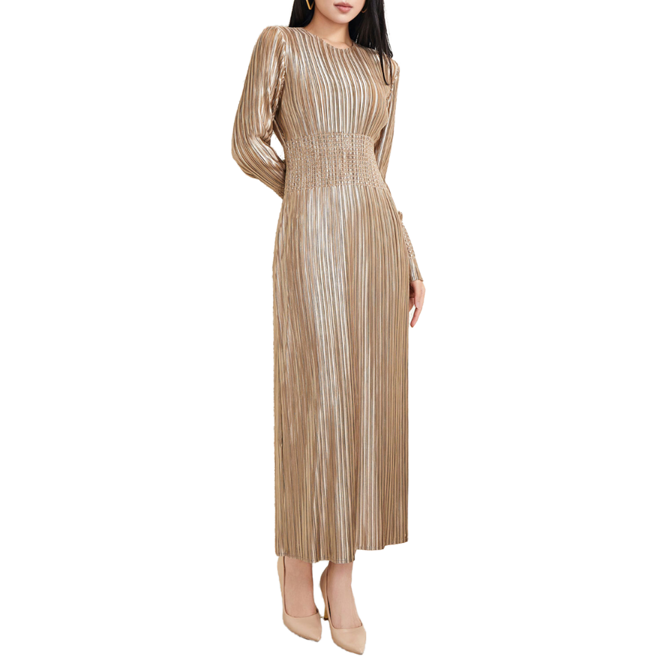 Polyester Miyake Pleated Straight Natural Waist High-End Elegant Party Fashionable Casual Style Midi Autumn Winter
