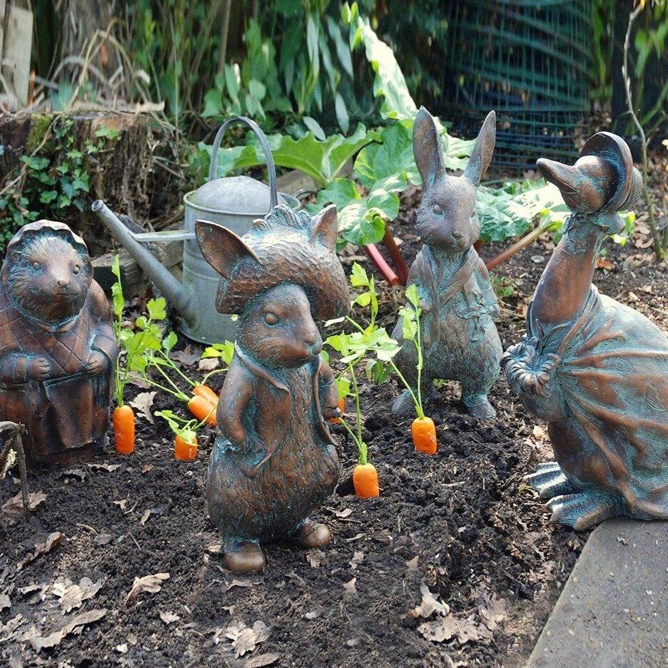 Ornement de jardin en bronze en forme de lapin avec chapeau, décoration extérieure résistante aux intempéries, finition métallique, sculpture animale pour cour