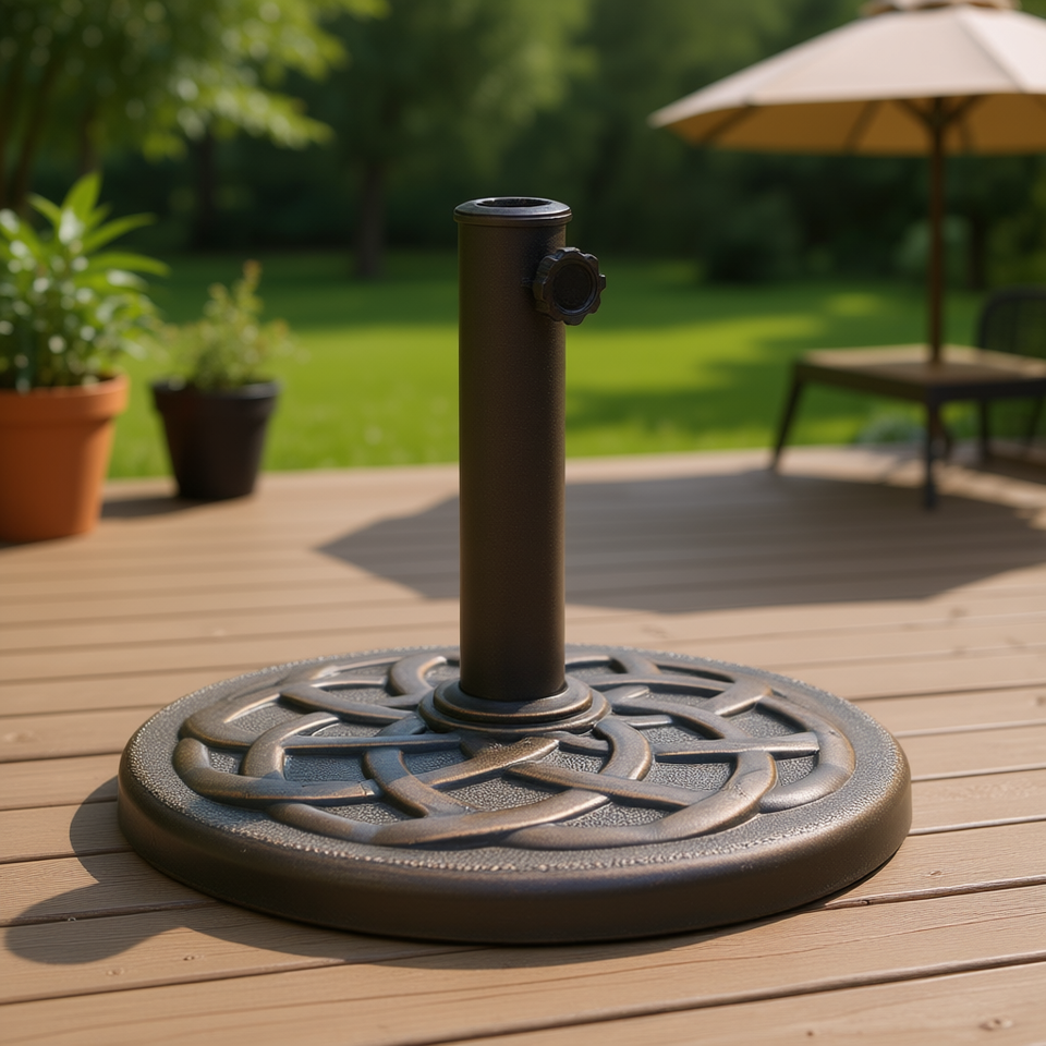 Base de parasol ronde en polyrésine bronze D0100HHHTAT, 41,9 lb, pour parasols de patio, mobilier d'extérieur, design contemporain