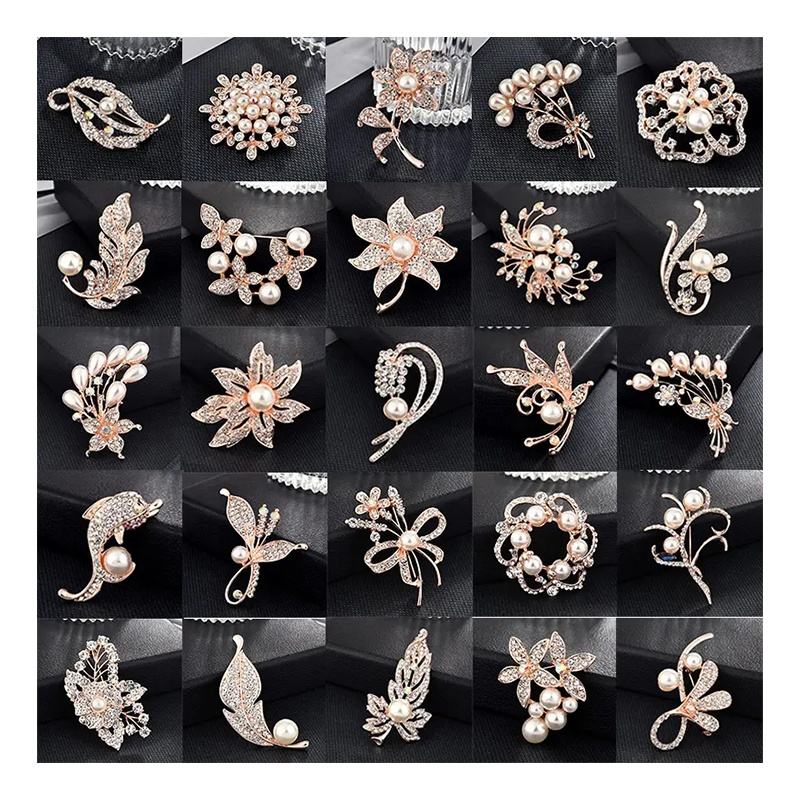 Broche florale en or rose avec strass en cristal pour femme – mariage et soirée – tailles multiples