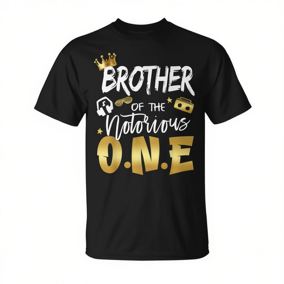 T-shirt à manches courtes et col rond pour hommes adultes, imprimé en sérigraphie, motif hip-hop old school « Brother of Notorious One » pour anniversaire