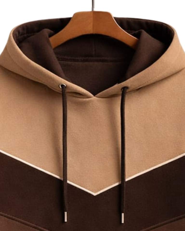 Sweat à capuche pour homme en coton molletonné, color block marron et kaki, style décontracté streetwear, fabricant sur mesure, fournisseur en gros de vêtements