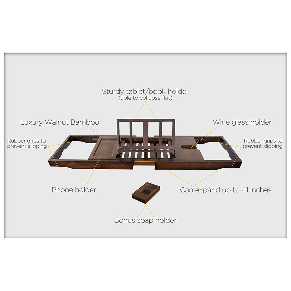 EG-Luxury Bamboo Bathtub Caddy Tray