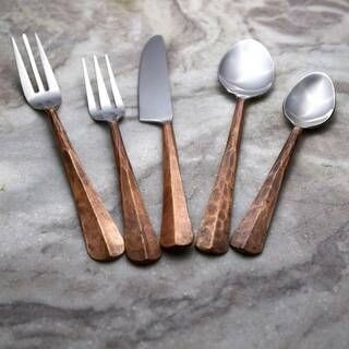 Ensemble de couverts en acier inoxydable avec manche en os brun, finition miroir haute brillance, réutilisable, facile à nettoyer, portable et léger